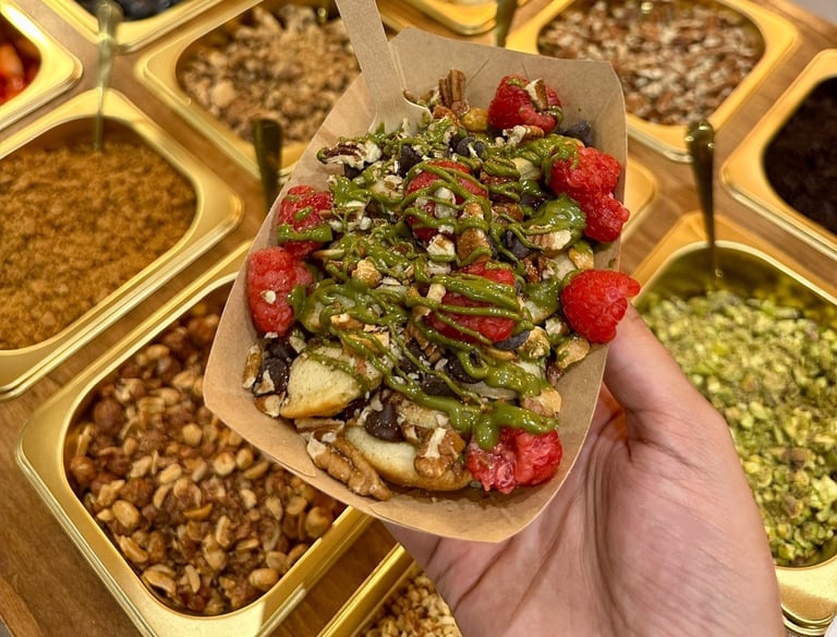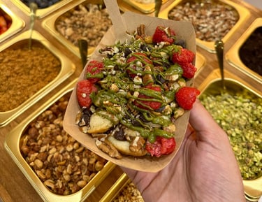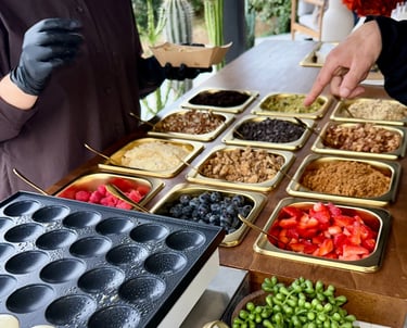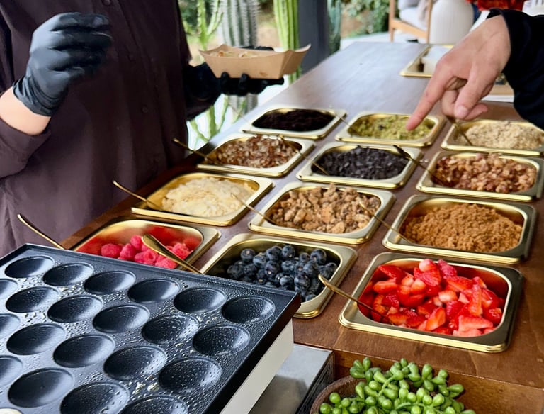 Lors de vos événements privés ou professionnels, vos invités se rendent à notre stand élégant, choisissent leurs toppings et coulis selon leurs envies, puis repartent avec leur barquette gourmande, fraîchement préparée sous leurs yeux.
